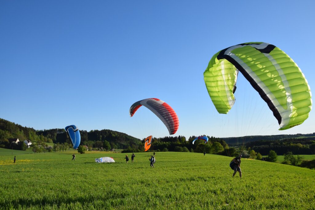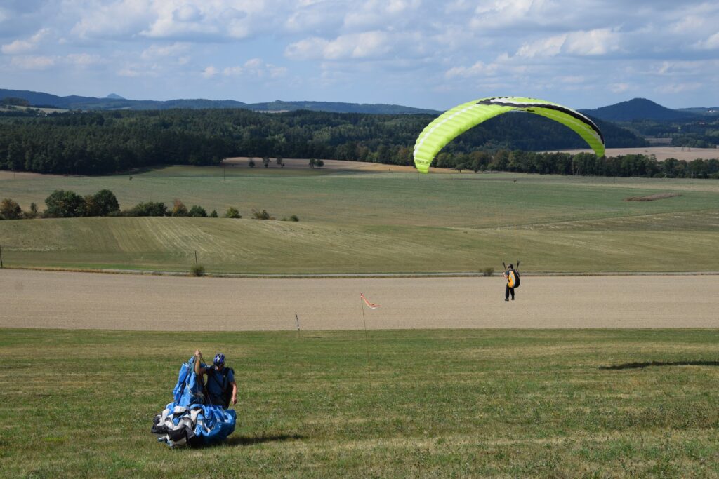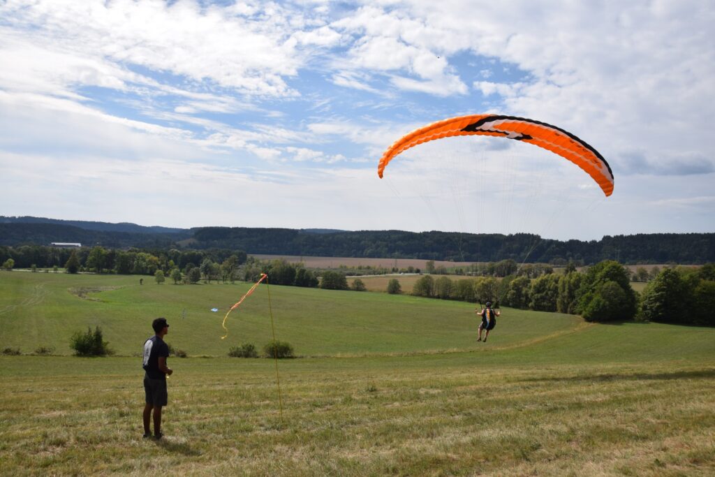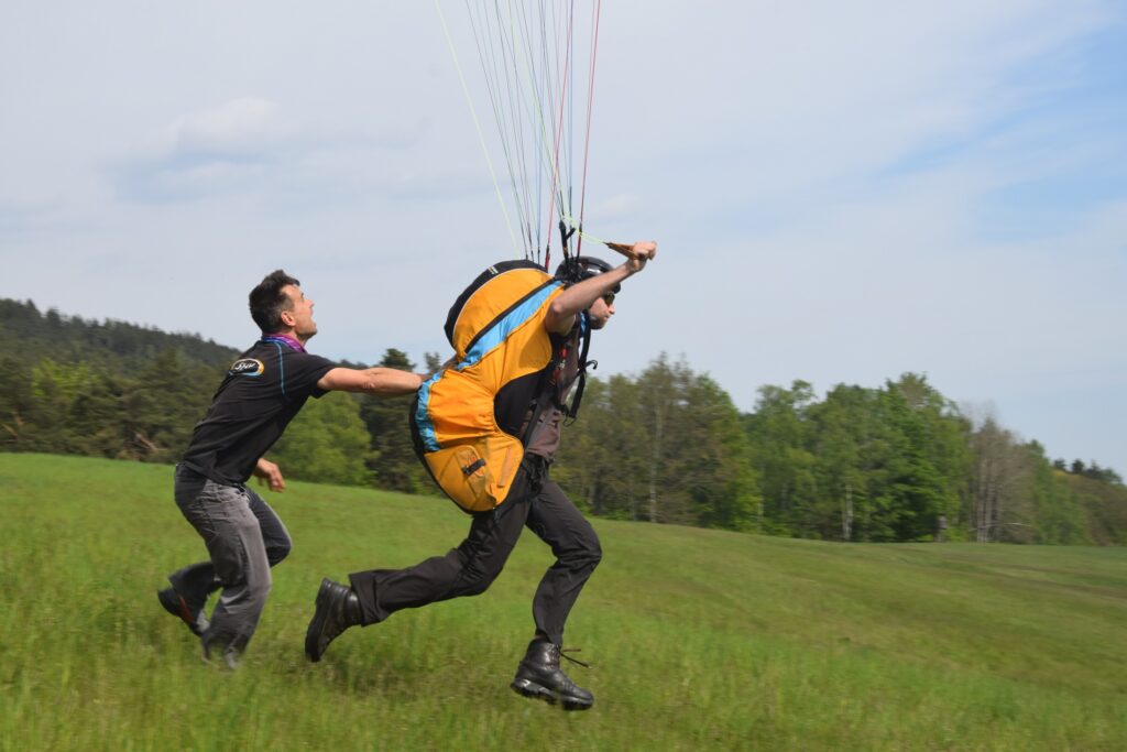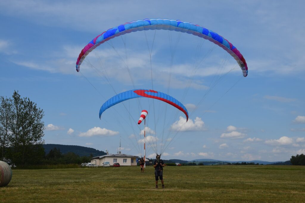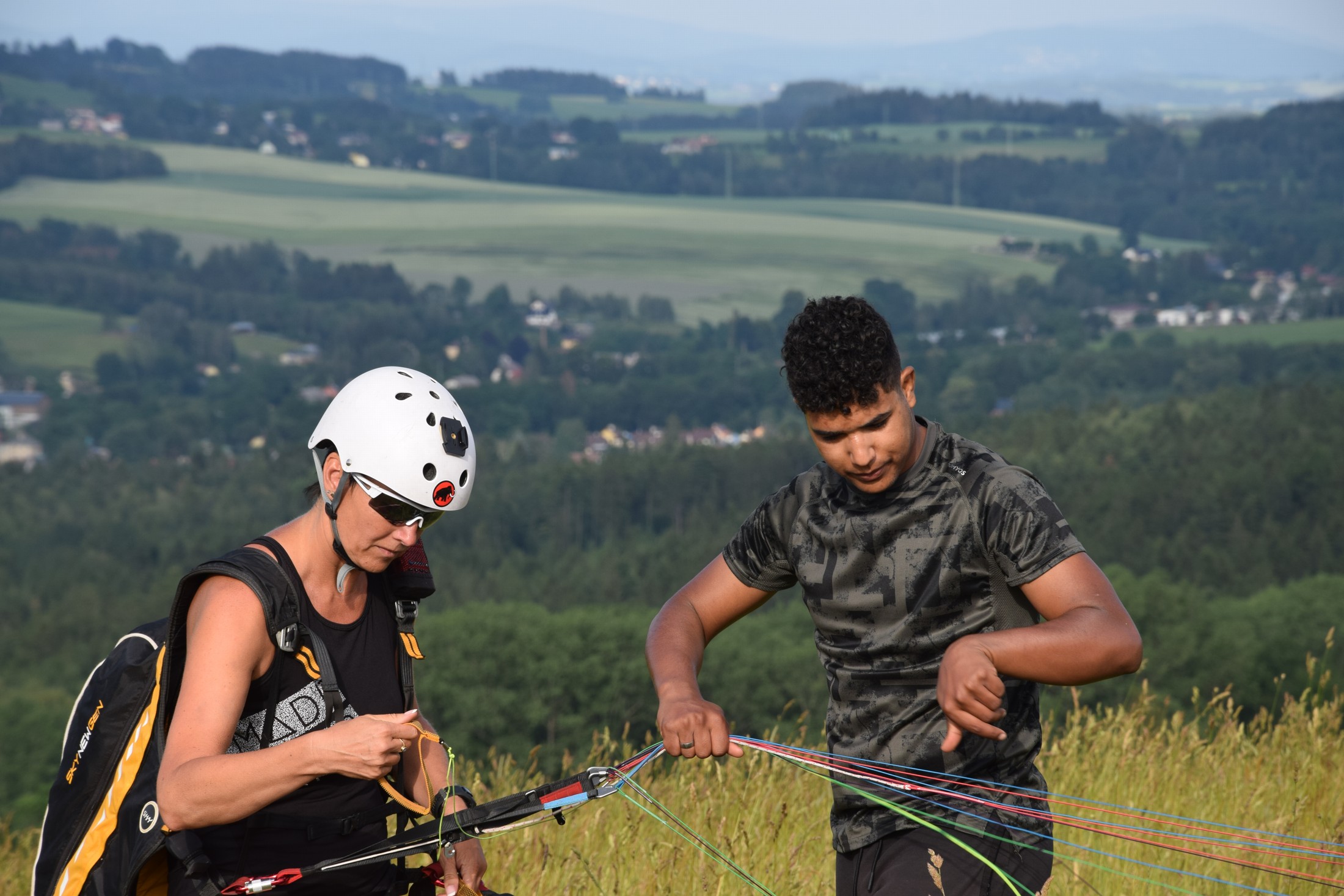 - Praktické cvičení ovládání padáku na zemi a létání pod vedením leteckých instruktorů