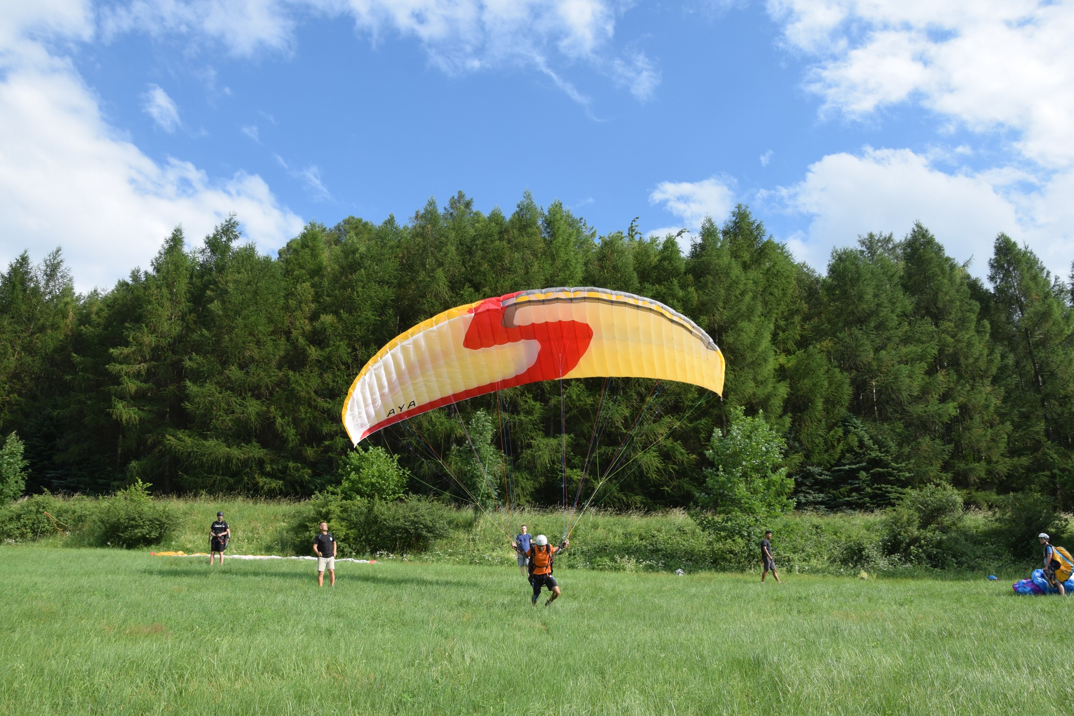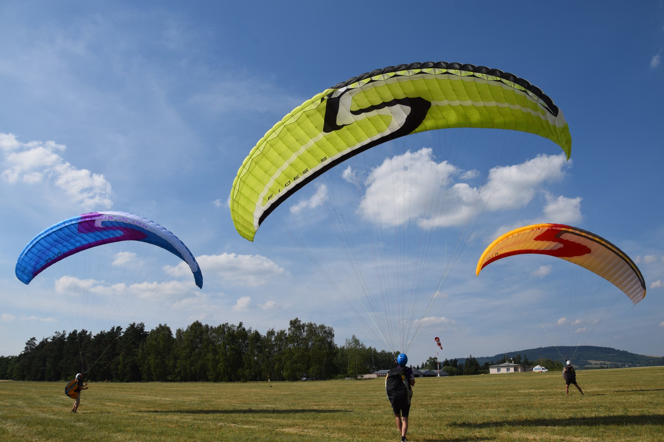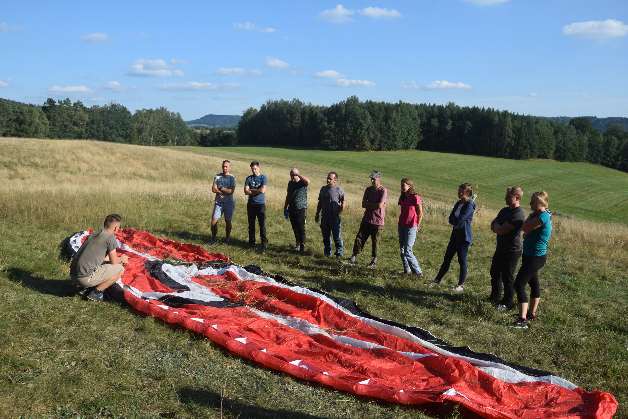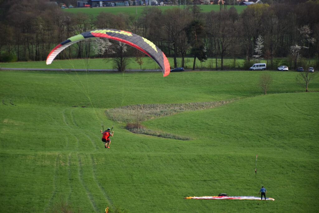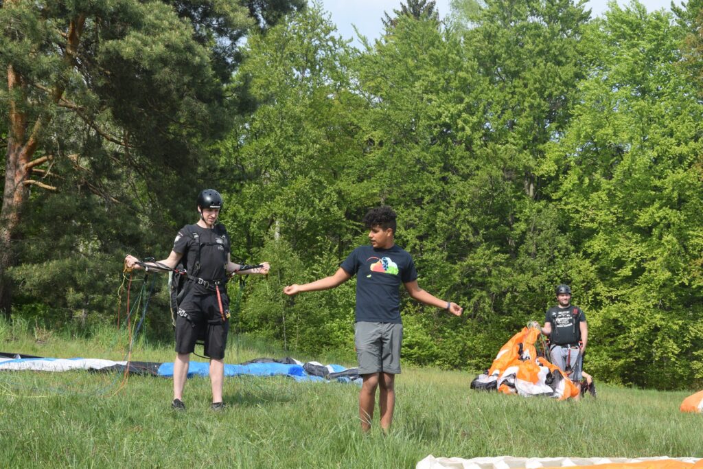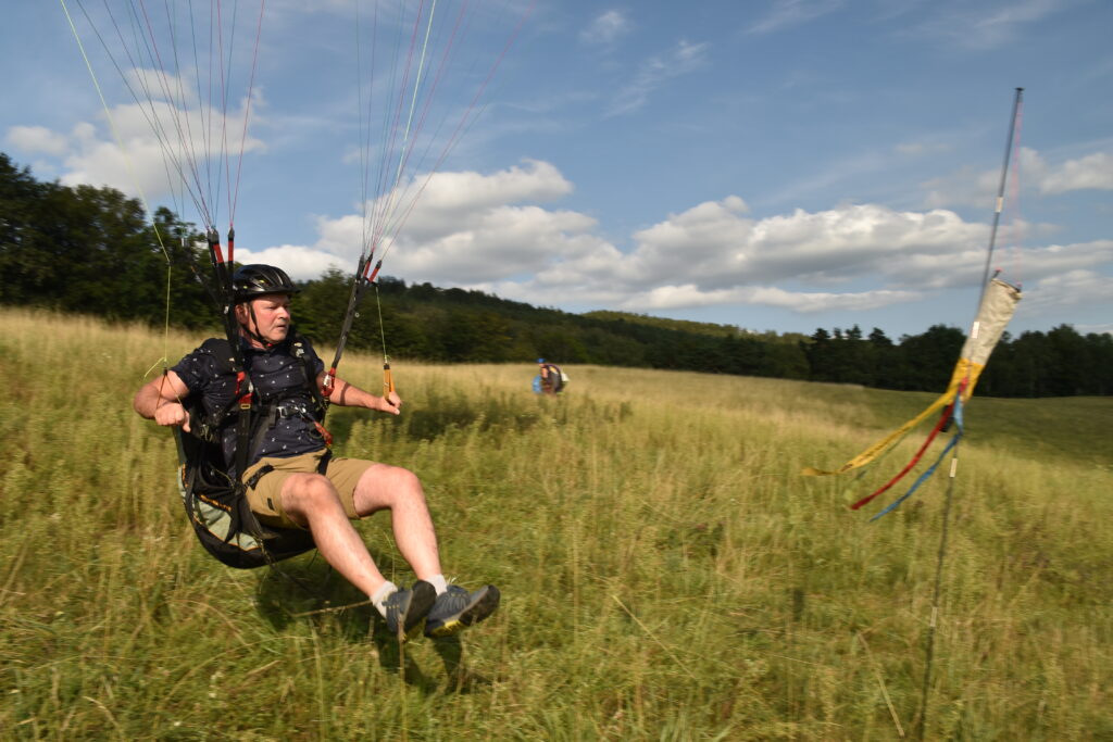 V praktické části kurzu budeme procvičovat ovládání vrchlíku na zemi, první starty a přistání a postupně začneme přidávat mírné a ostřejší zatáčky. Zvýšíme též převýšení, ze kterého budeme létat a budeme trénovat rozpočet na přistání, to znamená dokázat přistát na místo, kde si Vy přejete a ne tam, kam Vás vítr zanese. Večery si zpestříme povídáním o létání a může proběhnout i klasická grilovačka!