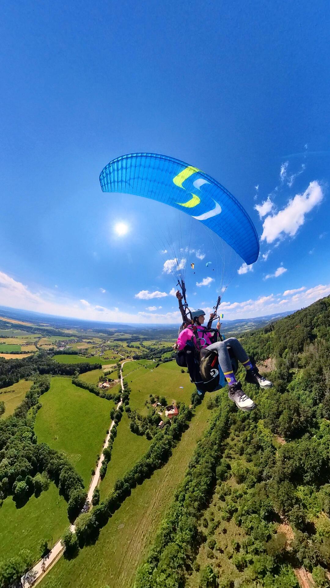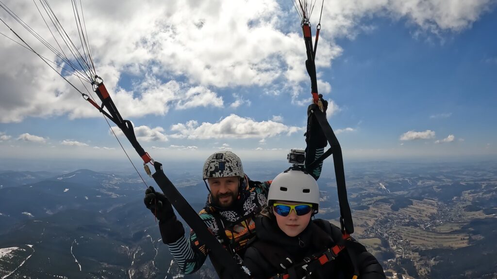 Pro zájemce, kteří mají chuť se proletět na padákovém kluzáku nabízíme možnost letu s kvalifikovaným pilotem – instruktorem. Ten po celou dobu letu padák řídí, takže na Vás nebudou kladeny prakticky žádné nároky a Vy si tak můžete plně vychutnávat překrásné pocity z letu a třeba si i udělat pár fotek z ptačí perspektivy.